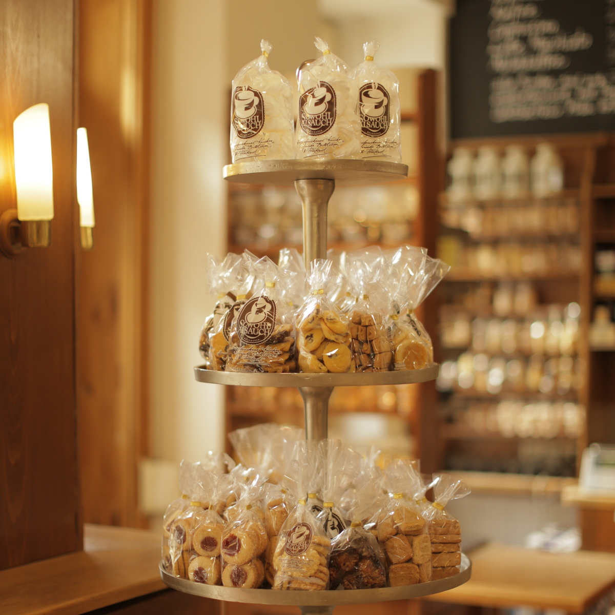 Die köstliche Torten- und Kuchenvielfalt aus der hauseigenen Tortenmanufaktur ist Herzstück des Verkaufs. Ob Himbeersahnetorte, Nuss-Mascarpone, unsere legendäre Milchreistorte oder der Dänische Apfelkuchen – unsere große Auswahl verwöhnt jeden Gaumen. Wem der Sinn nach einem süßen Kleingebäck steht, hat die Auswahl zwischen Plunder- und Blätterteiggebäcken mit verschiedenen Füllungen sowie bunten Kekstütchen und Pralinen für den kleinen Appetit.
