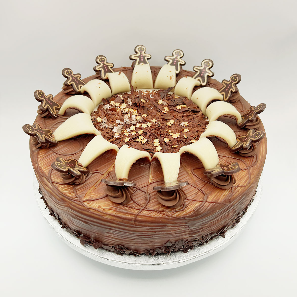 Nussböden (II), Zucker, Vanille, Marzipan (1), Preiselbeeren, Glucose, Kakao, dunkle Kuvertüre, Eier (C), Butter (G), Milch (G), Cremepulver (8) Weizen & Roggenmehl, Wasser, Farbstoff, Backtriebmittel, Honig, Kandisfarin, Nelken, Muskatnuss, Ingwer, Koriander, Piment, Macisblüte, Kardamon, Anis, Fenchel, Sternanis, Zimt